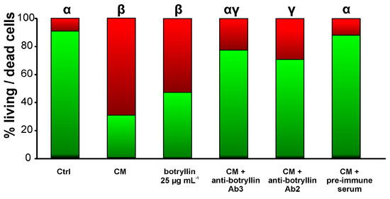 2.7. B. clausii-Conditioned Medium (CM) Has Biocidal Activity That Is Inhibited by Anti-Botryllin Antibodies