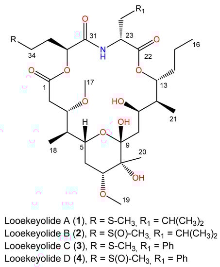 2.2. Isolation and Characterization of Novel Looekeyolides