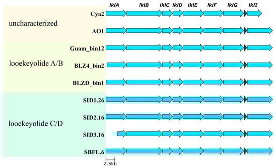 - Leão, T.; Wang, M.; Moss, N.; da Silva, R.; Sanders, J.; Nurk, S.; Gurevich, A.; Humphrey, G.; Reher, R.; Zhu, Q.; et al. A Multi-Omics Characterization of the Natural Product Potential of Tropical Filamentous Marine Cyanobacteria. Mar. Drugs 2021, 19, 20. [Google Scholar] [CrossRef] [PubMed]