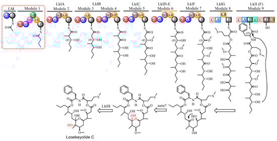 - Moss, N.A.; Leão, T.; Rankin, M.R.; McCullough, T.M.; Qu, P.; Korobeynikov, A.; Smith, J.L.; Gerwick, L.; Gerwick, W.H. Ketoreductase domain dysfunction expands chemodiversity: Malyngamide biosynthesis in the cyanobacterium Okeania hirsuta. ACS Chem. Biol. 2018, 13, 3385–3395. [Google Scholar] [CrossRef] [PubMed]