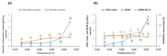| Temperature | Proteins (%, d.b.) | Carbon (%, d.b.) |