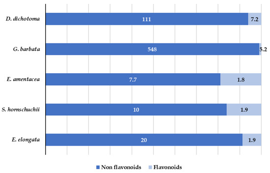 Distribution (mg/kg) of flavonoids and non-flavonoids in the targeted algae.