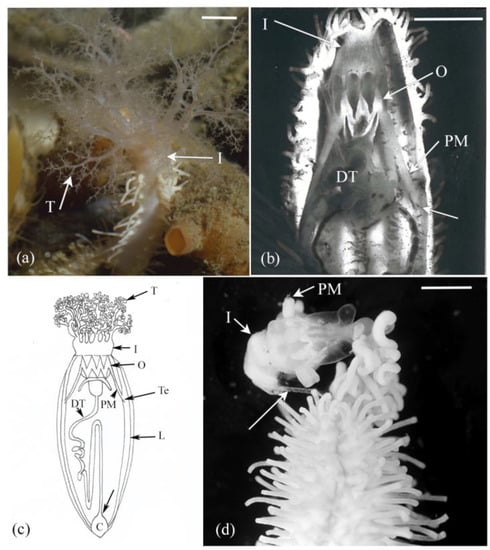 - Mashanov, V.; García-Arrarás, J. Gut regeneration in holothurians: A snapshot of recent developments. Biol. Bull. 2011, 221, 93–109. [Google Scholar] [CrossRef]
