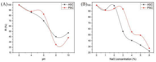 3.15. Analysis of Collagen Solubility at Different pH Levels and NaCl Concentrations