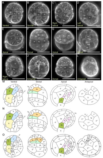 Variations in number of plates were also observed: (i) the precingular plate 6″ could be split into two plates, 6″_1 and 6″_2 (Figure 7C versus Figure 7A,D); and (ii) the anterior intercalary plate 3a could split into 3a_1 and 3a_2 (Figure 7K versus Figure 7F).