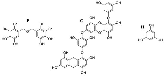 Chemical structure of phenolic compounds extracted from macroalgae with apoptotic activity. (F): BDDPM; (G): Dieckol; (H): Phloroglucinol.