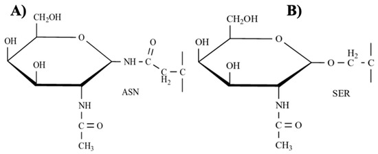 Glycoproteins are proteins covalently modified with glycans in specific amino acid residues by glycosylation, wherein glycans are conjugated to peptide chains by N- and O-glycosyl bonds [59] (Figure 9). They are biomolecules in cell membranes that act as transport proteins essential for cell-cell signaling, cell-matrix interaction, energy storage, adhesion, and intracellular trafficking [101]. Abnormal glycosylation of proteins has been reported to involve the progression of diseases such as cancer [102]. The release of these aberrantly glycosylated proteins reflects the abnormal states of malignant cells [101]. Systematic and especially site analysis of glycoproteins located on the surface of the cell membrane is complicated due to the heterogeneity of glycans, the low abundance of many surface glycoproteins, and the requirement for effective methods to separate them [102]. Therefore, abnormal protein glycosylation patterns are crucial for finding biomarkers and therapeutic interventions against cancer [103]. Consequently, glycoproteins extracted from macroalgae play an essential role in carcinogenesis because they possess anticancer, antioxidative, antiproliferative, hepatoprotective, and anti-inflammatory properties [59]. Figure 10 shows the possible mechanism of action of different glycoproteins extracted from macroalgae with pro-apoptotic activity.