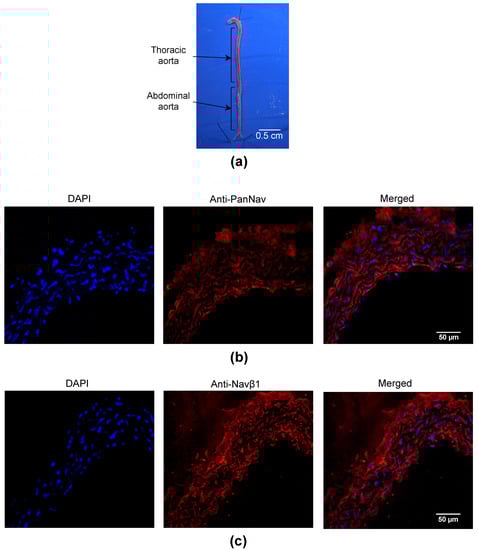 - Meguro, K.; Iida, H.; Takano, H.; Morita, T.; Sata, M.; Nagai, R.; Nakajima, T. Function and Role of Voltage-Gated Sodium Channel NaV1.7 Expressed in Aortic Smooth Muscle Cells. Am. J. Physiol.-Heart Circ. Physiol. 2009, 296, H211–H219. [Google Scholar] [CrossRef]