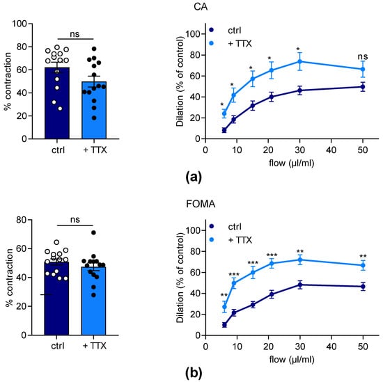 2.3. Effects of TTX on Dilation Capacity of Murine Mesenteric Arteries