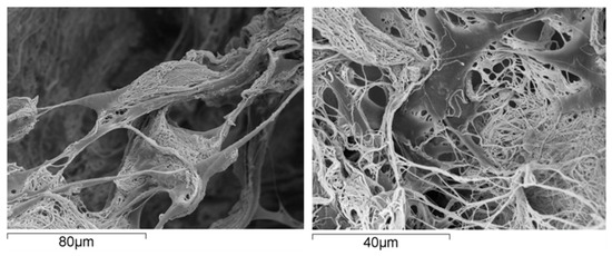 Among proteins, collagen extracted from marine sources elicits great interest since it has an amino acid composition that is similar to human type I collagen [14]; in addition, its use can prevent cultural and sanitary concerns related to the use of terrestrial-derived collagen. For these reasons, the extraction of collagen from marine organisms such as sponges [15,16,17], fishes [18,19], squids [20] and echinoderms [21] is now regarded as the safest approach for large-scale collagen acquisition [22]. Similar to other natural polymers, marine-derived collagen can be processed using various forming technologies including 3D manufacturing and bioprinting to develop 2D and 3D constructs showing enhanced mechanical properties in association with a thinner fibrous structure compared to terrestrial animal-derived collagen [23,24]. In addition, marine-derived collagen can be conjugated with inorganic materials to obtain 3D multiphasic scaffolds with excellent osteogenesis ability [25].