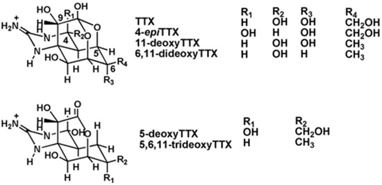 - Hwang, D.F.; Noguchi, T. Tetrodotoxin poisoning. Adv. Food Nutr. Res. 2007, 52, 141–236. [Google Scholar] [CrossRef]