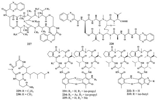 - Jiao, W.H.; Yuan, W.; Li, Z.Y.; Li, J.; Li, L.; Sun, J.B.; Gui, Y.H.; Wang, J.; Ye, B.P.; Lin, H.W. Anti-MRSA actinomycins D1-D4 from the marine sponge-associated Streptomyces sp. LHW52447. Tetrahedron 2018, 74, 5914–5919. [Google Scholar] [CrossRef]
