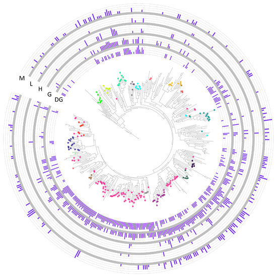 - Letunic, I.; Bork, P. Interactive tree of life (ITOL): An online tool for phylogenetic tree display and annotation. Bioinformatics 2007, 23, 127–128. [Google Scholar] [CrossRef] [PubMed]