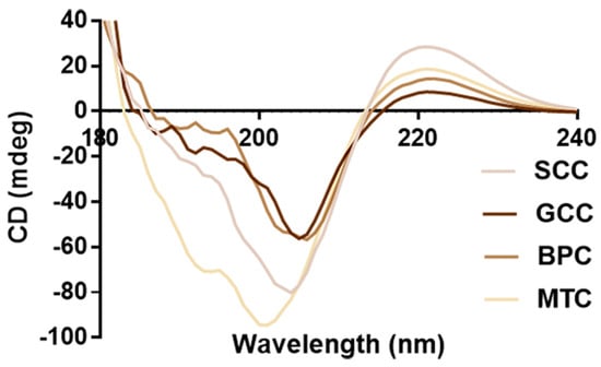 - Greenfield, N.J. Using circular dichroism spectra to estimate protein secondary structure. Nat. Protoc. 2006, 1, 2876–2890. [Google Scholar] [CrossRef]