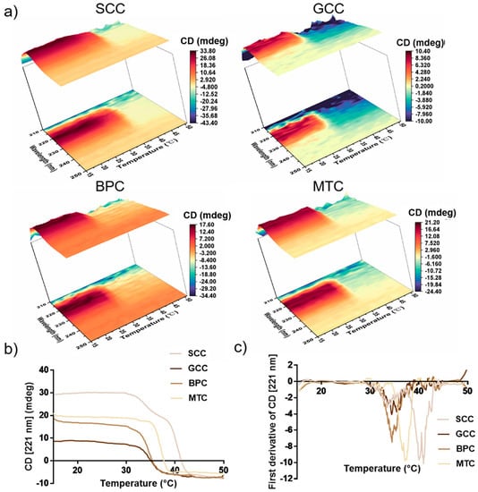 - Mu, C.; Li, D.; Lin, W.; Ding, Y.; Zhang, G. Temperature induced denaturation of collagen in acidic solution. Biopolymers 2007, 86, 282–287. [Google Scholar] [CrossRef] [PubMed]