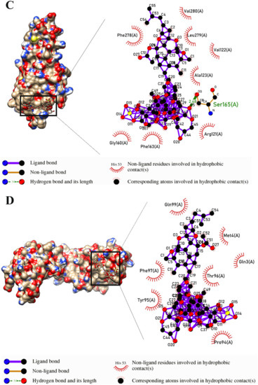 4.3.12. Intercedenside C Had the Most Affinity to the PGD2 Receptor