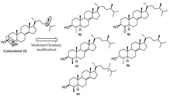 Semisynthetic conicasterol analogues [21].