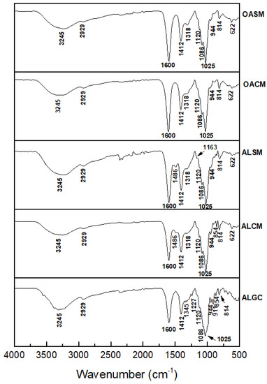 3.2. Preparation and Characterization of Sodium Alginates and Their Derivatives