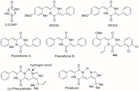 - Liao, S.R.; Qin, X.C.; Wang, Z.; Li, D.; Xu, L.; Li, J.S.; Tu, Z.C.; Liu, Y. Design, synthesis and cytotoxic activities of novel 2,5-diketopiperazine derivatives. Eur. J. Med. Chem. 2016, 121, 500–509. [Google Scholar] [CrossRef]