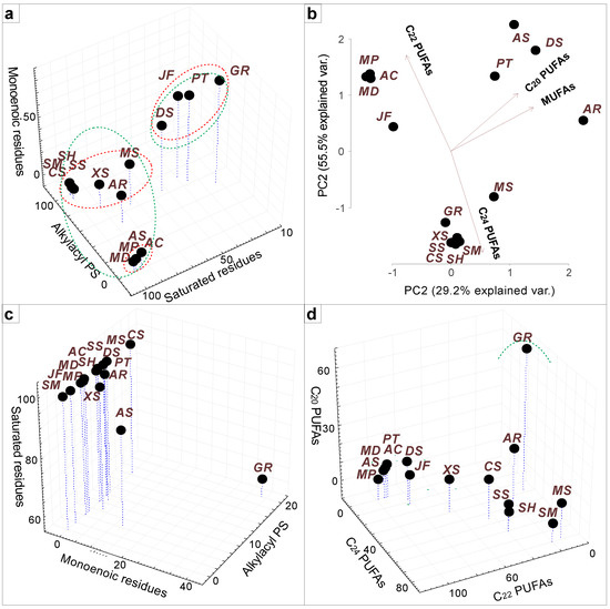 - Imbs, A.B.; Grigorchuk, V.P. Lipidomic study of the influence of dietary fatty acids on structural lipids of cold-water nudi-branch molluscs. Sci. Rep. 2019, 9, 20013. [Google Scholar] [CrossRef]