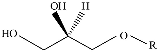 - Hichami, A.; Duroudier, V.; Leblais, V.; Vernhet, L.; Le Goffic, F.; Ninio, E.; Legrand, A. Modulation of platelet-activating-factor production by incorporation of naturally occurring 1-O-alkylglycerols in phospholipids of human leukemic monocyte-like cells THP-1. Eur. J. Biochem. 1997, 250, 242–248. [Google Scholar] [CrossRef]