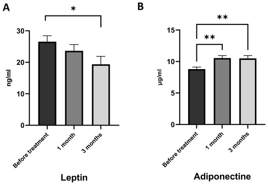 - Fruhbeck, G.; Catalan, V.; Rodriguez, A.; Gomez-Ambrosi, J. Adiponectin-Leptin Ratio: A Promising Index to Estimate Adipose Tissue Dysfunction. Relation with Obesity-Associated Cardiometabolic Risk. Adipocyte 2018, 7, 57–62. [Google Scholar] [CrossRef] [PubMed]