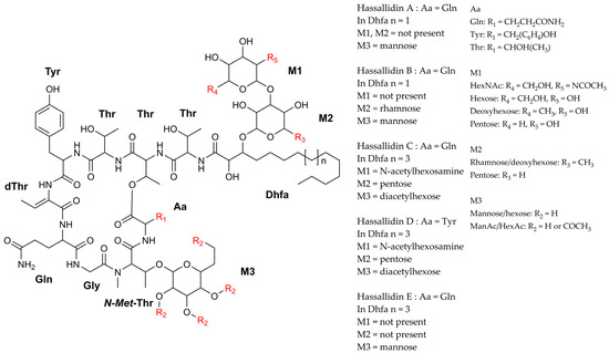 - Heinilä, L.M.P.; Fewer, D.P.; Jokela, J.K.; Wahlsten, M.; Ouyang, X.; Permi, P.; Jortikka, A.; Sivonen, K. The Structure and Biosynthesis of Heinamides A1–A3 and B1–B5, Antifungal Members of the Laxaphycin Lipopeptide Family. Org. Biomol. Chem. 2021, 19, 5577–5588. [Google Scholar] [CrossRef]
