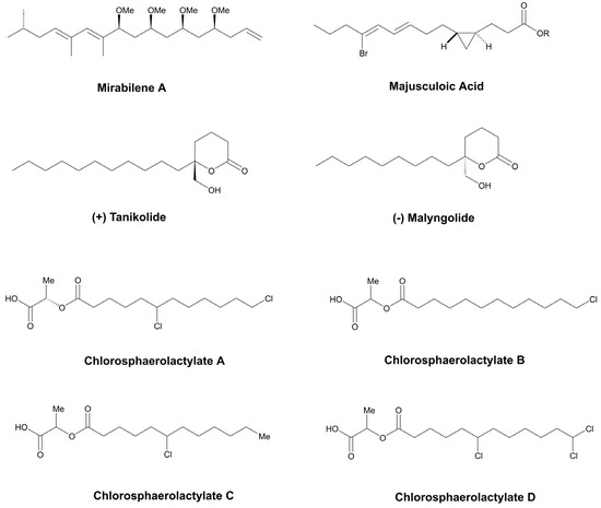 | Chlorosphaerolactylate A | 341.27 | Sphaerospermopsis sp. LEGE 00249 (Aphanizomenonaceae) | Freshwater | Maranhão Dam Reservoir (Montargil, Portugal) | [84] |