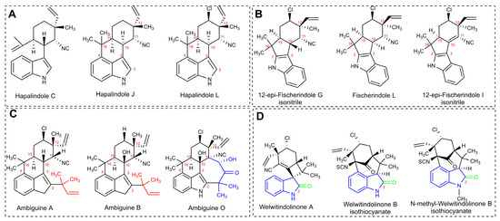 | Welwitindolinone A isonitrile | 588.98 | Hapalosiphon welwitschii UH IC-52-3 (Hapalosiphonaceae) | Terrestrial | Australia | [99] |