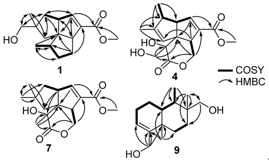 - Yu, L.; Dai, H.-F.; Zhao, Y.-X.; Zuo, W.-J.; Dong, W.-H.; Mei, W.-L.; Zeng, H.-C. Two new sesquiterpene derivatives from soil actinomycete Streptomyces albospinus 15-4-2. Phytochem. Lett. 2013, 6, 110–112. [Google Scholar] [CrossRef]