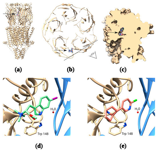 - Noviello, C.M.; Gharpure, A.; Mukhtasimova, N.; Cabuco, R.; Baxter, L.; Borek, D.; Sine, S.M.; Hibbs, R.E. Structure and Gating Mechanism of the A7 Nicotinic Acetylcholine Receptor. Cell 2021, 184, 2121–2134.e13. [Google Scholar] [CrossRef] [PubMed]