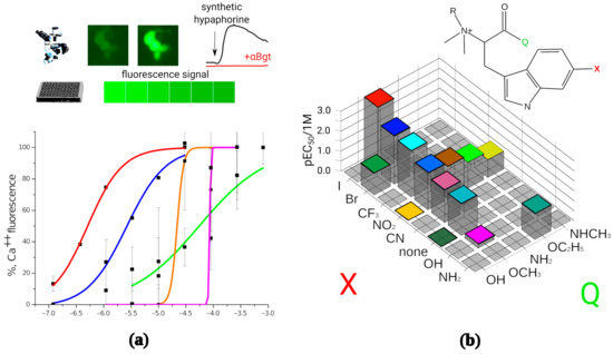 - Kasheverov, I.; Shelukhina, I.; Kudryavtsev, D.; Makarieva, T.; Spirova, E.; Guzii, A.; Stonik, V.; Tsetlin, V. 6-Bromohypaphorine from Marine Nudibranch Mollusk Hermissenda Crassicornis Is an Agonist of Human A7 Nicotinic Acetylcholine Receptor. Mar. Drugs 2015, 13, 1255–1266. [Google Scholar] [CrossRef]