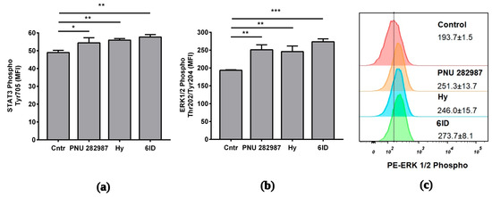 2.6. Involvement of ERK and STAT3 in the Protective Role of PNU 282987, Hypaphorine, and 6ID in LPS-Mediated Inflammation in Macrophages