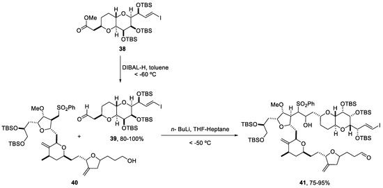 Flow reduction conditions of ester (38) with DIBAL-H.