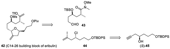 Retrosynthetic analysis of the C14-26 building block (42) of eribulin (37).