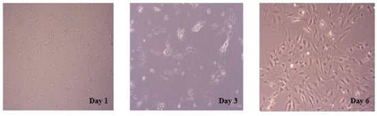 The morphological changes of primary cultured neurons were investigated using an inverted microscope (Figure 1). The newly inoculated primary hippocampal neurons showed suspension, a round state and a small cell size. After 12 h, the adherent neuron cells were mostly fusiform, accompanied by the growth of protrusions in some cells. However, no obvious links between the cells were established. On the third day of culture, connections between cells began to form, along with the growth of neuronal cell processes and the enlargement of cell bodies. After six days, the cultured neurons were thriving, with more and longer protrusions extending into the reticulation. The purity of hippocampal neurons was about 95% using microtubule-associated protein 2 as a neuron-specific marker for the detection of primary cultured neurons [].