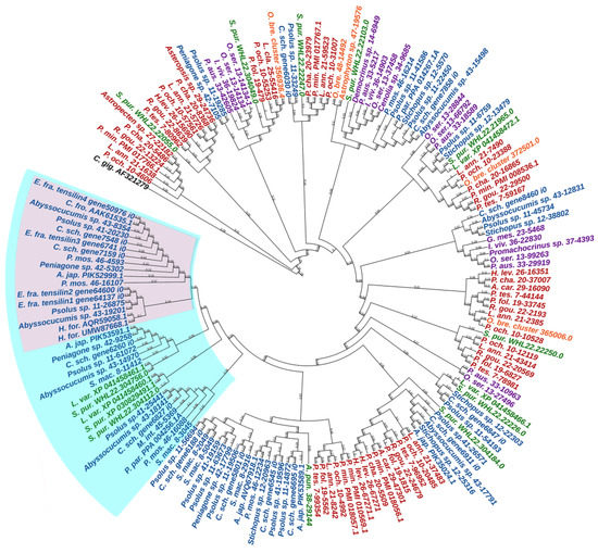 The syndecan (SDC) family includes transmembrane proteoglycans that form homodimers and perform function of co-receptors of cell surface proteins such as integrins [51]. Mammals have four genes of this family, while only one has been found in echinoderms (Figure 9, Supplementary File S7). The domain structures of echinoderm and mammalian syndecans are similar and include a signal peptide, an extracellular domain represented by glycine-serine motifs and the transmembrane and C-terminal cytoplasmic domains [52]. The exception is the presence of the SEA domain in the central region of the syndecans in some echinoderms. It is reliably detected by NCBI CD Search and SMART in the holothurians E. fraudatrix and A. japonicus. SMART also identifies SEA in H. leucospilota and the sea stars A. rubens and P. miniata, but below the probability threshold.