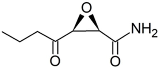 Structure of a cerulenin analog that has a shorter side chain than cerulenin.