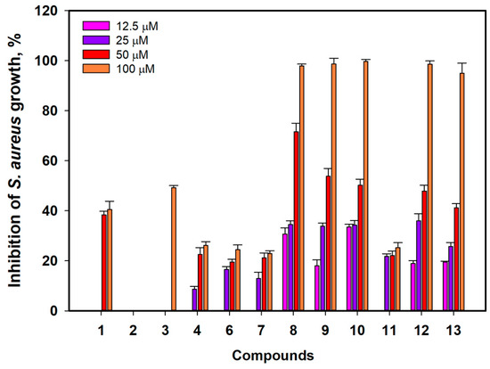 | Compound | 3 | 8 | 9 | 10 | 12 | 13 |