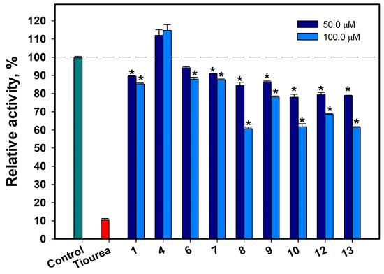2.3.2. Influence of Some Isolated Compounds on Urease Activity