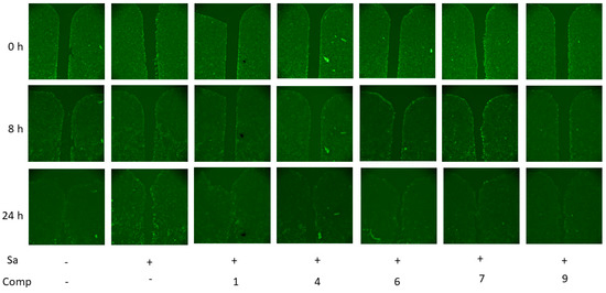 2.3.4. Effects of Compounds on HaCaT Keratinocytes Infected with Staphylococcus aureus