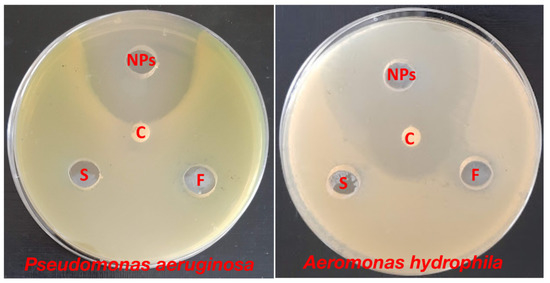| Aeromonas hydrophila | 49 ± 2.08 | 0 | 0 | 27 ± 0.57 |