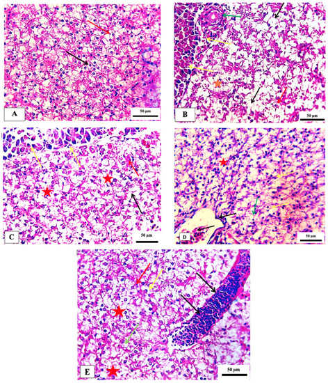 - Al-Motabagani, M.A. Histological and histochemical studies on the effects of methotrexate on the liver of adult male albino rat. Int. J. Morphol. 2006, 24, 417–422. [Google Scholar] [CrossRef]