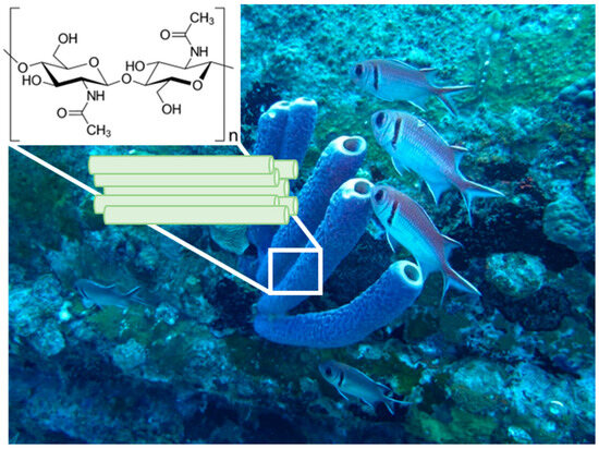 Structural polysaccharide chitin has been recently recognised as such a kind of 3D structured biological material that is excellently applicable within the “scaffolding strategy” of modern biomaterialogy [1]. In particular, chitinous constructs isolated from diverse representatives of cultivated marine demosponges, which belong to the Verongiida order (Figure 1), remain to be candidates with high potential in biomedicine [2,3] and bioinspired materials science [4].