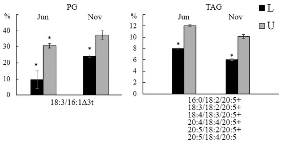 - Gray, G.R.; Ivanov, A.G.; Król, M.; Williams, J.P.; Kahn, M.U.; Myscich, E.G.; Huner, N.P.A. Temperature and Light Modulate the Trans-Δ3-Hexadecenoic Acid Content of Phosphatidylglycerol: Light-Harvesting Complex II Organization and Non-Photochemical Quenching. Plant Cell Physiol. 2005, 46, 1272–1282. [Google Scholar] [CrossRef] [PubMed]