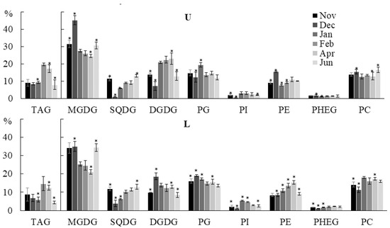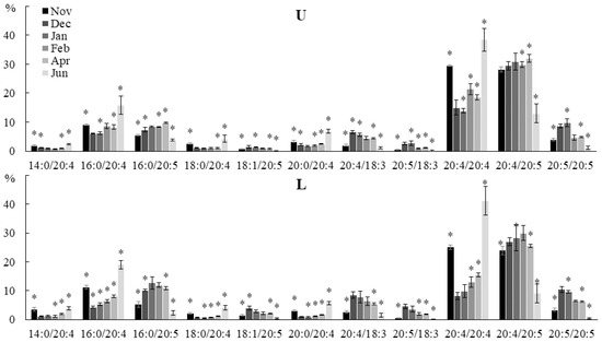 2.2. Seasonal Dynamics of the Lipid Composition of Undaria pinnatifida