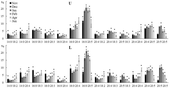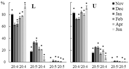 | PC | 82 | 16:0/20:5, 16:0/20:4, 16:0/18:2, 16:0/18:3, 14:0/20:4, 14:0/20:5, 20:4/20:4, 20:4/20:5 |