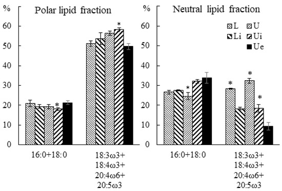 2.3. Effect of Infection with the Endophyte Laminariocolax aecidioides on the Lipid Composition of Undaria pinnatifida