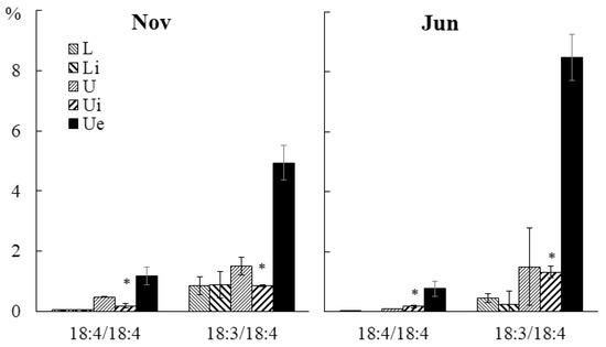 | MGDG | 146 | 18:4/18:4, 20:5/18:4, 18:3/18:4, 20:4/18:4 |