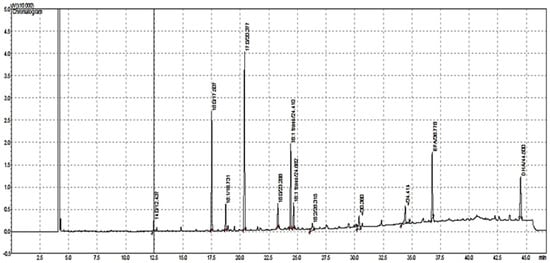 The fatty acids composition of shrimp by-product total lipids (TLs) is presented in Table 1. A representative chromatogram of shrimp by-product TLs using gas chromatography with a flame ionization detector (GC-FID) is presented in Figure 2.